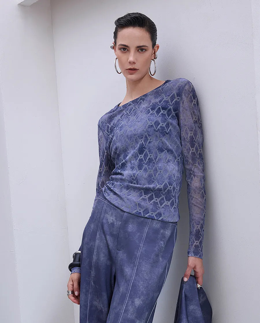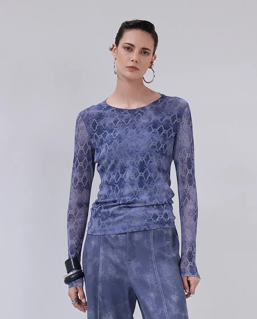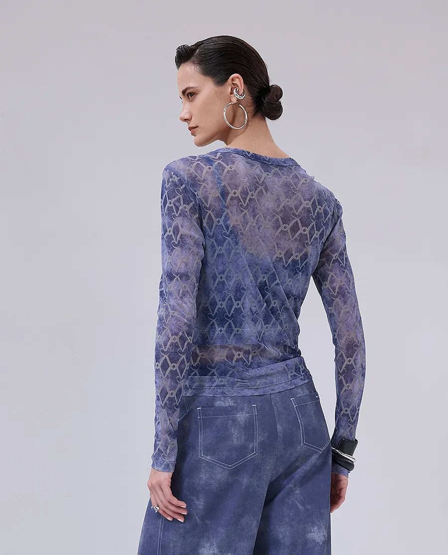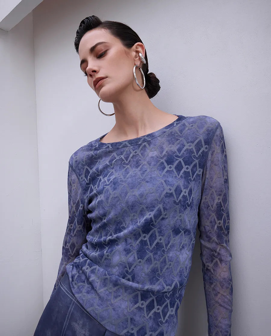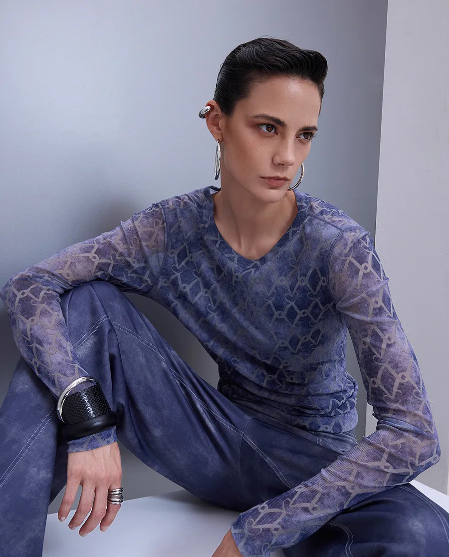 Aimer Chuang's "LOVE IS" collection mesh long-sleeved top features exquisite designer patterns for a unique look. The lightweight, breathable fabric provides all-day comfort and easily pairs with any outfit, perfect for any occasion. Whether you're working or relaxing, it helps you confidently express your fashion sense.