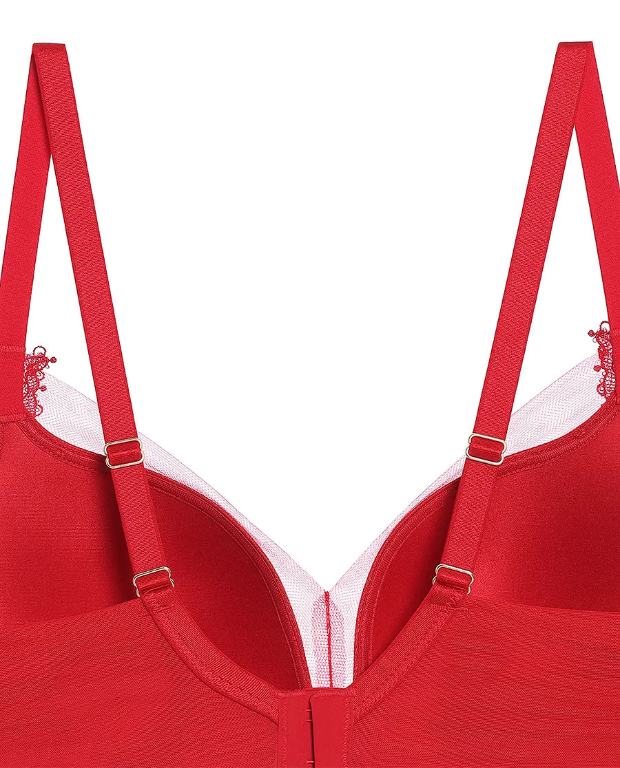 Wireless design for all-day comfort without sacrificing hold; 3/4 cups and medium-thick molded padding offer gentle lift and sleek contouring. Soft, skin-friendly fabric ensures breathability and reduces friction.